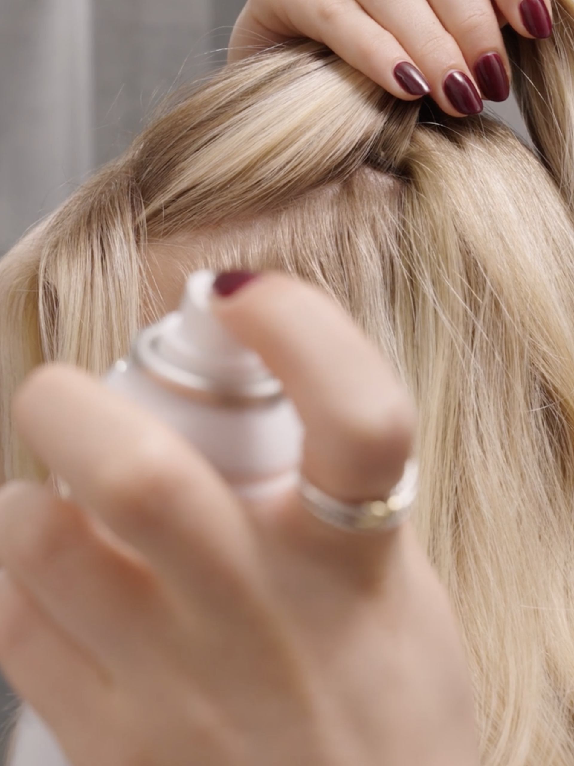 Section your hair horizontally about an inch behind your hairline, creating a part from ear to ear. Clip the top section away. Mist a light texture spray where the clips will sit—this gives them grip without weight. For fine or thinning hair, twist two small sections, cross them in a V, and pin for extra anchor support.